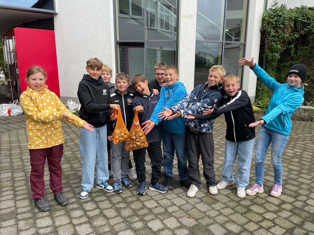 Bei unserem Projekttag „Apfel und Erdapfel“ ging es von Anfang an zur Sache. Die Klasse 6 startete am Vormittag mit Herrn Schleipen im Schulgarten und grub voller Begeisterung Kartoffeln aus der Erde. Die Ernte war überraschend reichlich! Nach dem Waschen und Schneiden wanderten die Knollen in den Ofen, dazu rührten wir einen frischen Kräuterquark mit selbstgepflückten Kräutern aus dem Garten an.