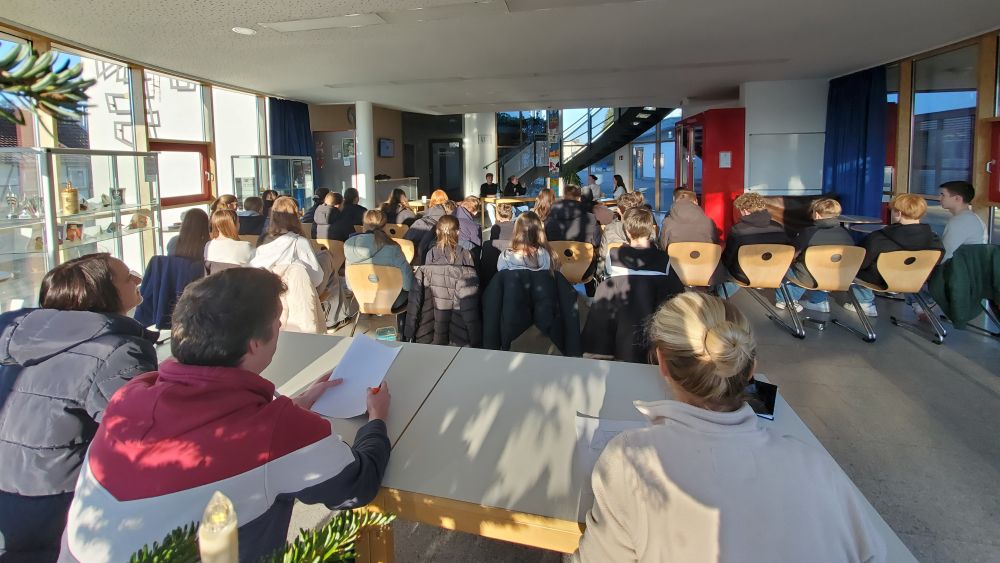Am 17.12.2025 debattierten die Klassensieger Jonas Gilbert, Luise Büttner, Marla Kopf und Lilly Goldbach dann im Schulentscheid vor einer Jury, bestehend aus Frau Drott, Frau Suffner und Herrn Hofner, die Frage, ob es eine Führerscheinpflicht für E-Scooter geben sollte, und erhielten danach ein direktes Feedback durch die Lehrkräfte.